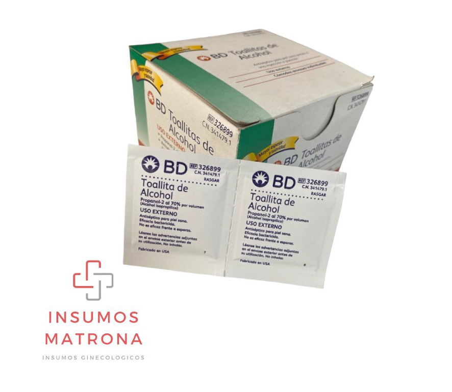 Cada toallita está empapada con alcohol isopropílico al 70%